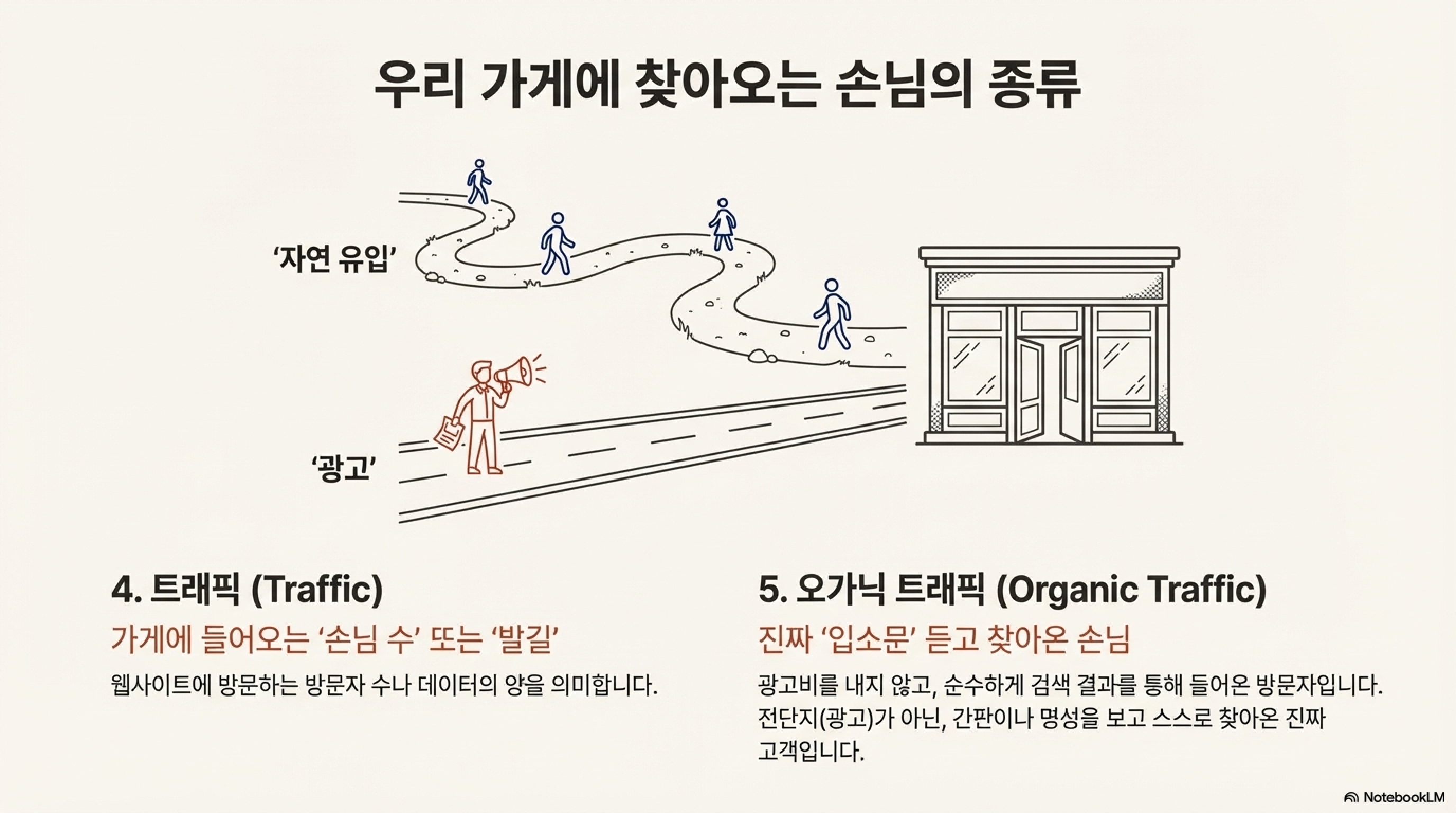 - 쉽게 설명하면: 내 가게에 들어오는 **'발길(손님 수)'**입니다.