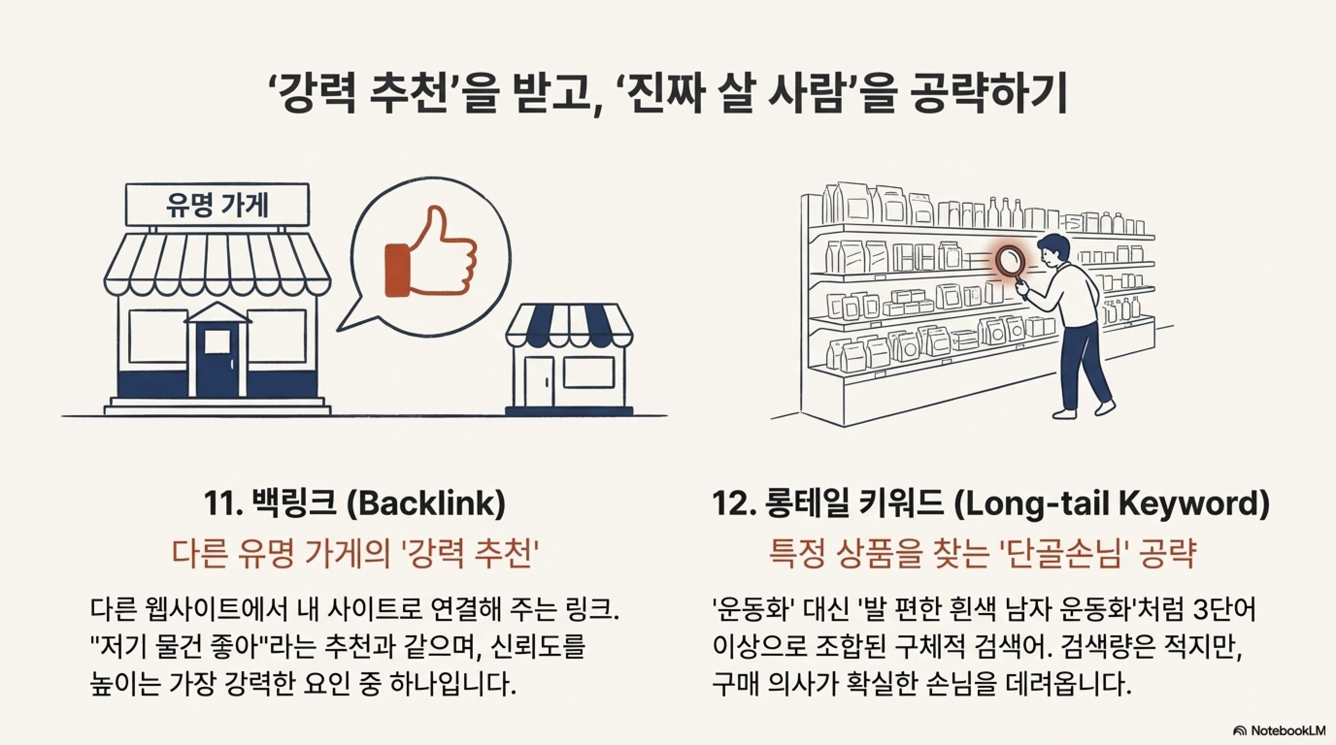 - 쉽게 설명하면: 다른 유명한 가게에서 "저기(내 가게) 물건 좋아"라고 추천해 주는 것과 같습니다. (가장 강력한 점수 요인 중 하나)