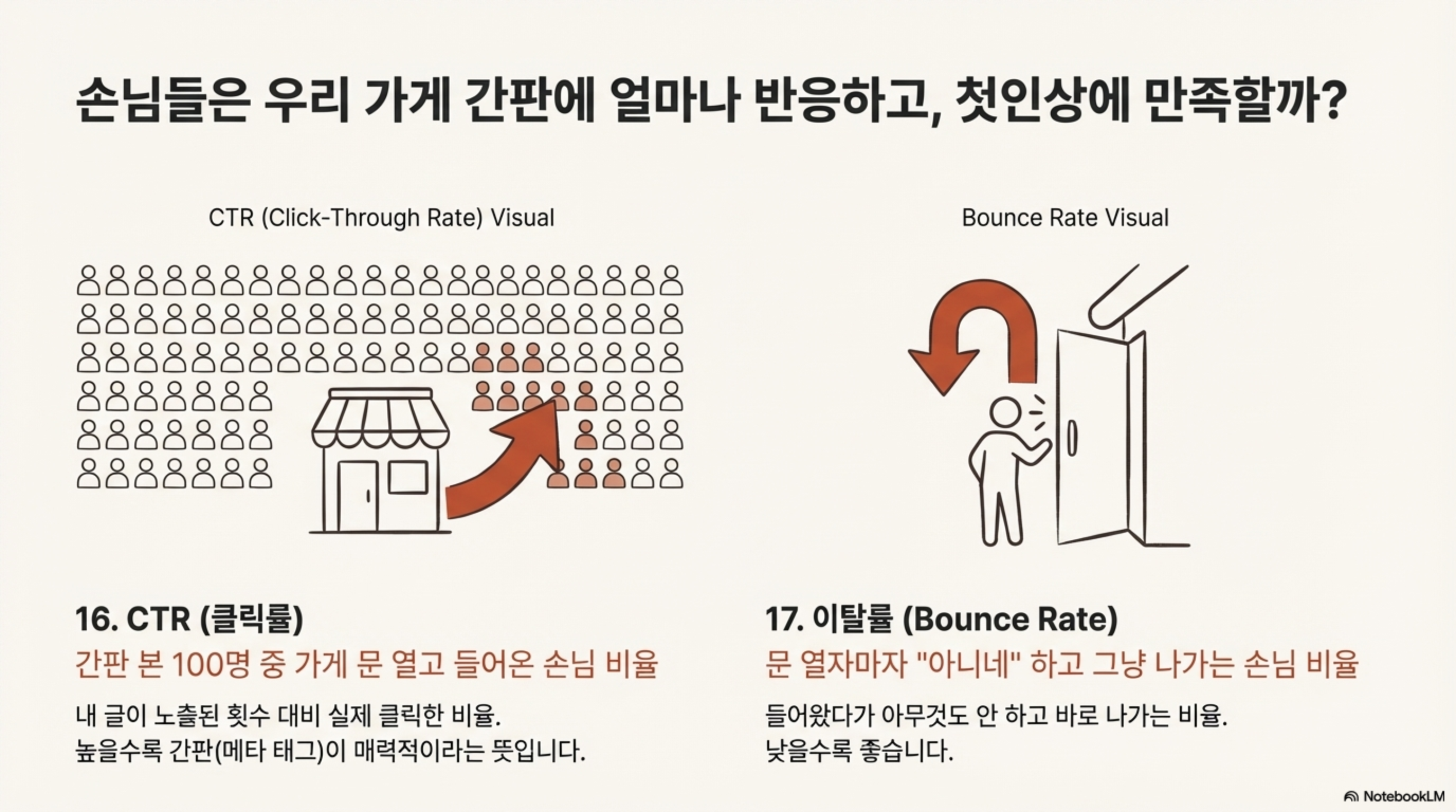 - 쉽게 설명하면: 간판을 본 사람 100명 중 실제로 가게 문을 열고 들어온 사람의 비율입니다.