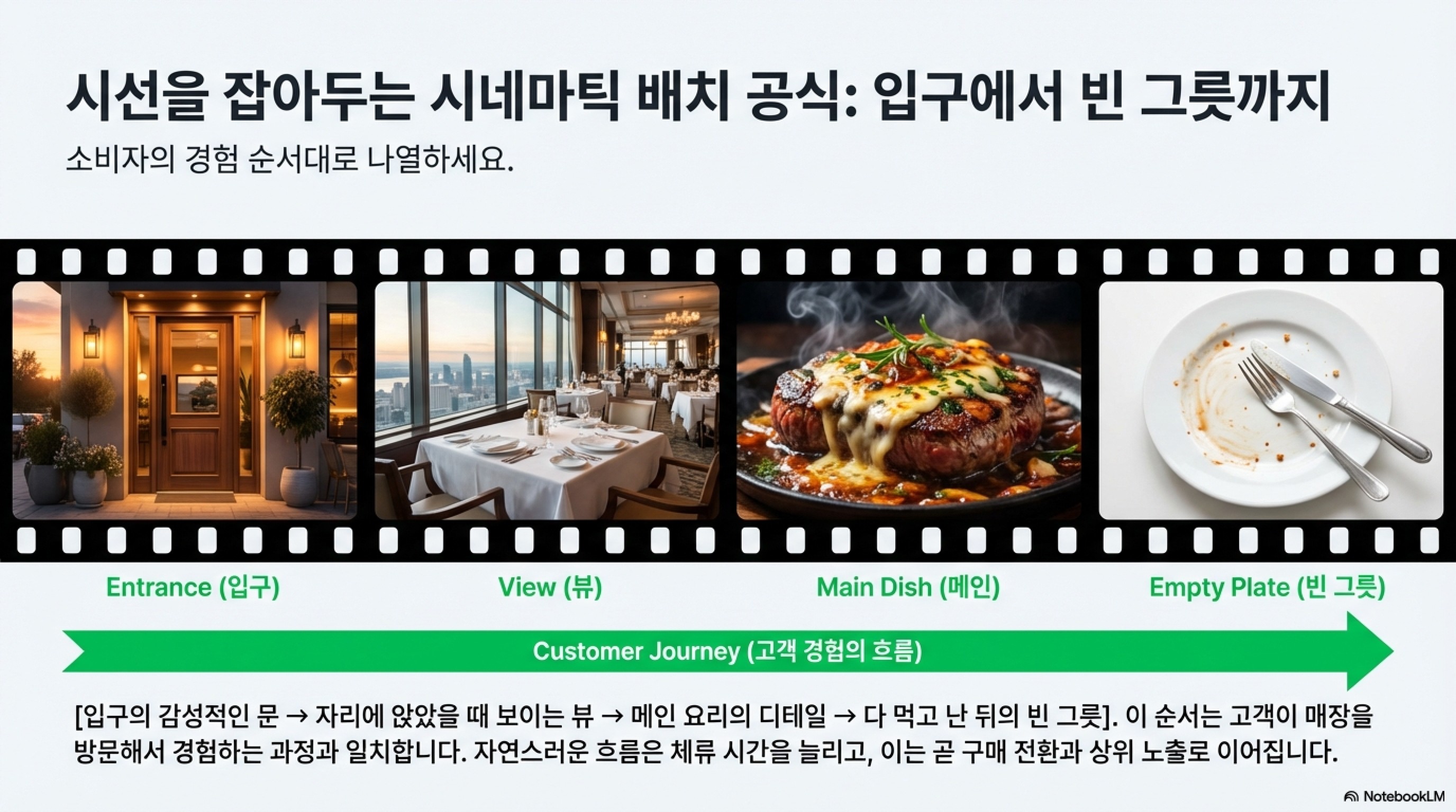 5. 사진첩을 '코스 요리'처럼 배열하세요 플레이스에 들어온 손님이 사진을 3초만 보고 나간다면? 순위는 떨어집니다. 사진 배치는 고객의 시선이 머무는 시간(체류 시간)을 결정합니다. 사진 50장을 무작위로 던져놓지 마세요. 마치 영화의 콘티처럼 [입구의 감성적인 문 → 자리에 앉았을 때 보이는 뷰 → 메인 요리의 디테일 → 다 먹고 난 뒤의 빈 그릇] 순서로 배치하세요. 소비자의 뇌가 정보를 편안하게 받아들이게 하면, 자연스럽게 체류 시간이 길어지고 이는 곧 구매 전환과 상위 노출로 이어집니다.