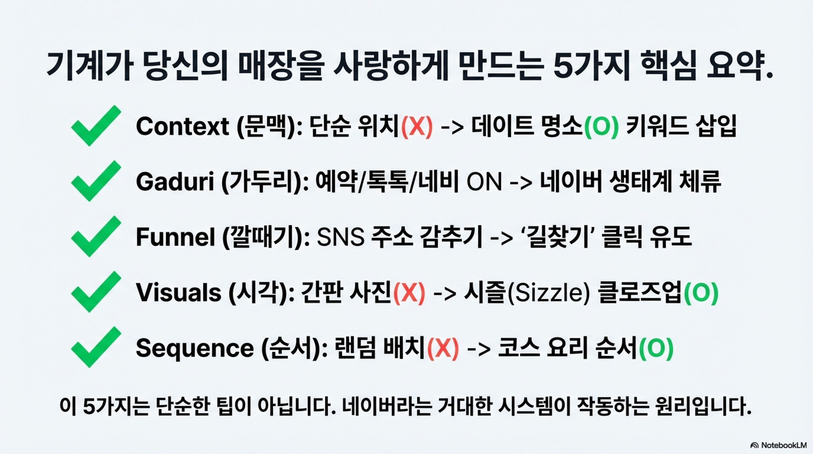 마치며 이것은 꼼수나 어뷰징이 아닙니다. 네이버라는 거대한 AI에게 "우리 가게가 이렇게 준비된 곳입니다"라고 정확히 의사소통하는 기술입니다. 이 원리들을 오늘부터 하나씩 적용해 보십시오. 경쟁자들이 "요즘 경기 안 좋다"며 한숨 쉴 때, 당신의 가게 앞에는 줄이 서기 시작할 것입니다.